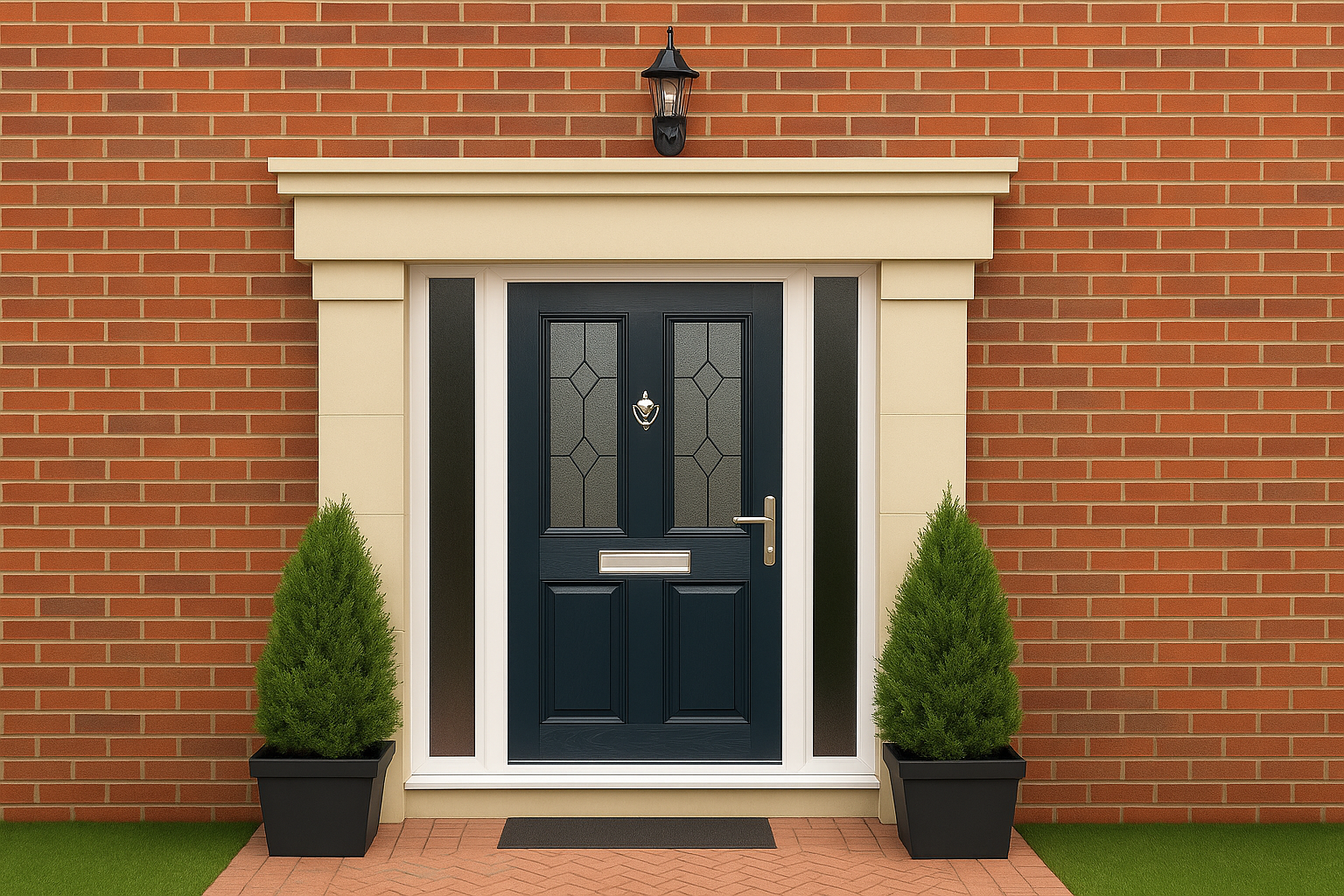 Choose composite uPVC, timber or aluminium front doors, with styles, colours and glazing to suit any home—securely fitted with multi-point locks for peace of mind plus